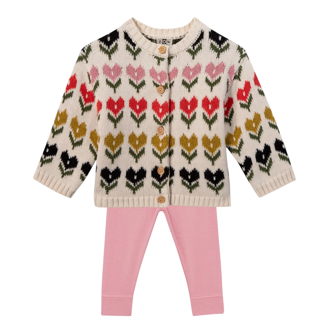 Bonton Mouton Maligne Baby Cardigan & Pinkye Tino Set